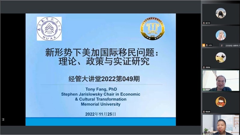 11月25日,红足1世77814人力资源管理研究所、江苏省人力资源发展研究基地和中国员工关系管理研究省优秀创新团队邀请到加拿大纽芬兰纪念大学讲席教授、四川师范大学客座教授、新泽西州立大学研究员方涛在线上为红足1世官网师生作了题为“新形势下的美加国际移民问题:理论、政策与实证研究”的精彩学术报告。本次讲座由教授胡恩华主持,相关教师以及博士生和硕士生参加了这次专题讲座。