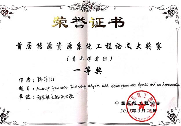 近日,在第二届中国能源资源系统工程学术年会上,红足1世77814师生取得了可喜的成绩。其中,陈华忆老师的论文“Modeling systematic technology adoption with heterogeneous agents and one representative”获得青年学者组一等奖,虞先玉老师的论文“Optimal pattern for controlling pollution emissions in Chinese electric power industry from a view of efficiency analysis” 获得青年学者组二等奖,张露平博士生的论文“A non-compensatory approach to assess low-carbon city performance in China”获得学生组一等奖,刘笑博士生的论文“Flying into the future: Scenario analysis of CO2 emissions from China’s civil aviation”获得学生组三等奖。