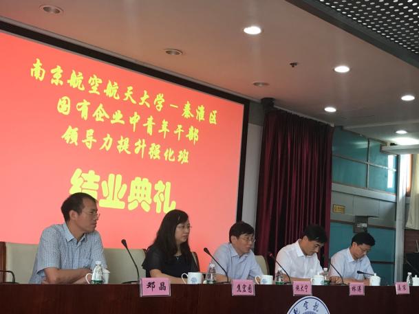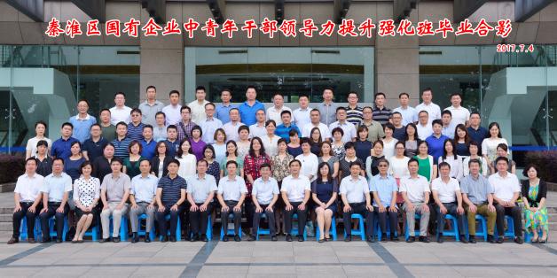 2017年7月4日上午,秦淮区国有企业中青年干部领导力提升强化班结业典礼在南京明故宫校区综合楼报告厅隆重举行。出席典礼的领导和嘉宾有:南京航空航天大学副校长施大宁教授,南京市秦淮区人民政府区长林涛,区委常委、组织部部长姜宸,副区长宗宁虎,南航经管院副院长邓晶、教育培训中心执行主任杜刚、教师代表苗建军教授和教育培训中心的老师们,以及秦淮区政府办、区委党校、区国资办的领导和全体学员,会议由红足1世77814党委书记焦宏图主持。