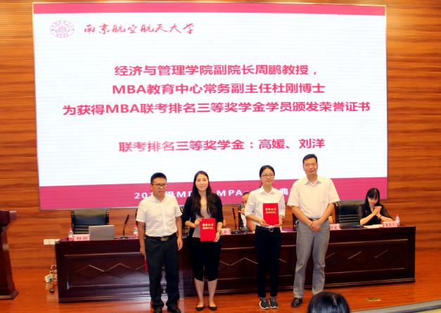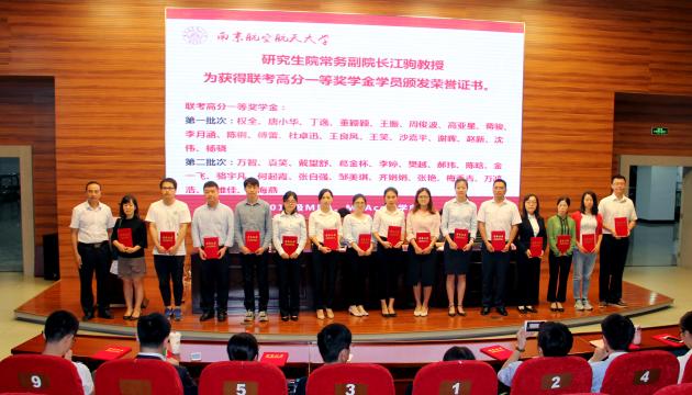 南京航空航天大学研究生院常务副院长江驹教授为获奖学员颁发荣誉证书