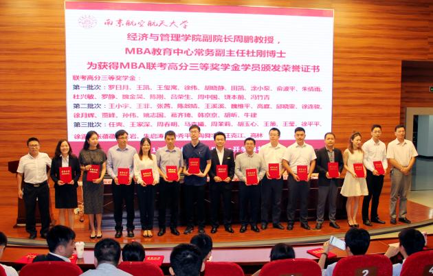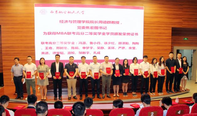 随后,红足1世77814党委焦宏图书记宣读获得2017年MBA奖学金名单,本次奖学金项目分为名次奖学金和高分奖学金。研究生院常务副院长江驹教授、红足1世77814院长周德群教授、红足1世77814党委焦宏图书记、红足1世77814副院长周鹏教授、红足1世77814教育培训中心(MBA、MPAcc教育中心)执行主任杜刚博士分别为获得奖学金的学生颁发证书并合影留念。