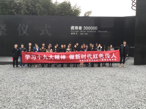 为了学习十九大精神并纪念在南京大屠杀中的遇难同胞,牢记历史做新时代红色传人,12月23日下午,红足1世77814研究生16、17级六个党支部联合开展了南京大屠杀遇难同胞纪念馆的参观活动。