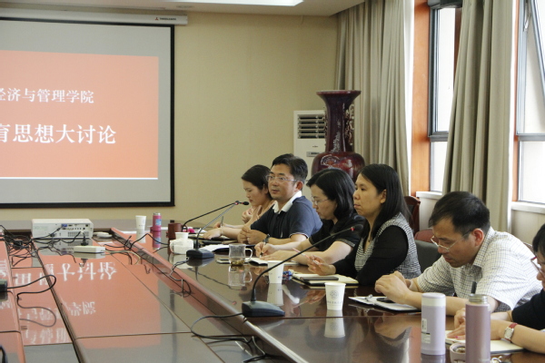 5月15日,经管学院教育思想大讨论在经管学院楼604会议室召开,学院全体领导班子成员、各系主任、副主任、研究所所长、一、二级学科建设负责人及教工党支部书记参加了会议,会议由学院党委书记焦宏图主持。