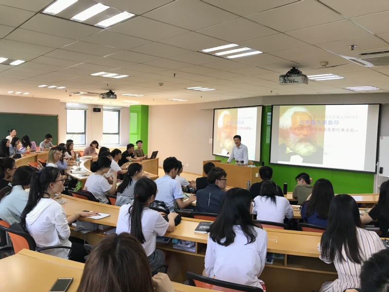 讲座中,江可申老师以“沉香弥久质弥珍——价值论思想经典重拾”为主题,从三个角度对马克思先生的著作《资本论》进行了阐述,并带领大家重拾价值论思想经典。首先,江老师从“江苏省学习习近平在纪念马克思诞辰200周年大会上重要讲话精神座谈会”切入,带领学员们学习了习近平总书记在纪念马克思诞辰200周年大会上的重要讲话。第二个角度是“价值学是经济学的基石”。江老师把斯密的《国富论》的价值概念和马克思的《资本论》所提出的价值学进行对比,后者厘清了前人略显混乱的价值概念,将使用价值和交换价值严格区分,充分凸显出马克思的严谨治学态度和严密哲学思考逻辑。另外,老师还以手边的矿泉水为例,深入浅出地解释了两者的差别,使同学们更加形象地了解交换价值和使用价值的区别。最后,江老师向学员们介绍了马克思在撰写《资本论》时所使用的演绎法和历史唯物主义的分析方法,江老师以“道勃雷”形象的引用为例向学员们介绍了《资本论》中引用的大量历史实例。培训中,江老师还为学员们展示了自己的《资本论》读书笔记,并鼓励大家精读《资本论》,并从中汲取营养。