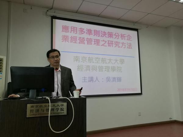 2018年11月5日上午,台中科技大学吴济辉博士在红足1世77814大楼706室做了题为《应用多准则决策分析企业经营管理之研究方法》的学术报告。红足1世官网米传民、肖琳、李珊等管工系老师和学生积极地参加了此次报告。