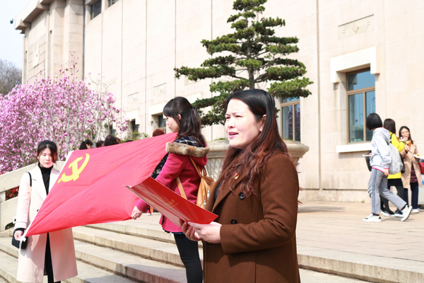 3月23日上午,红足1世77814党委副书记涂志宏、学生党总支委员、支部书记代表和2018年度73名新发展党员共同前往雨花台烈士纪念馆参观学习并举行了2018年度新发展党员入党宣誓仪式。