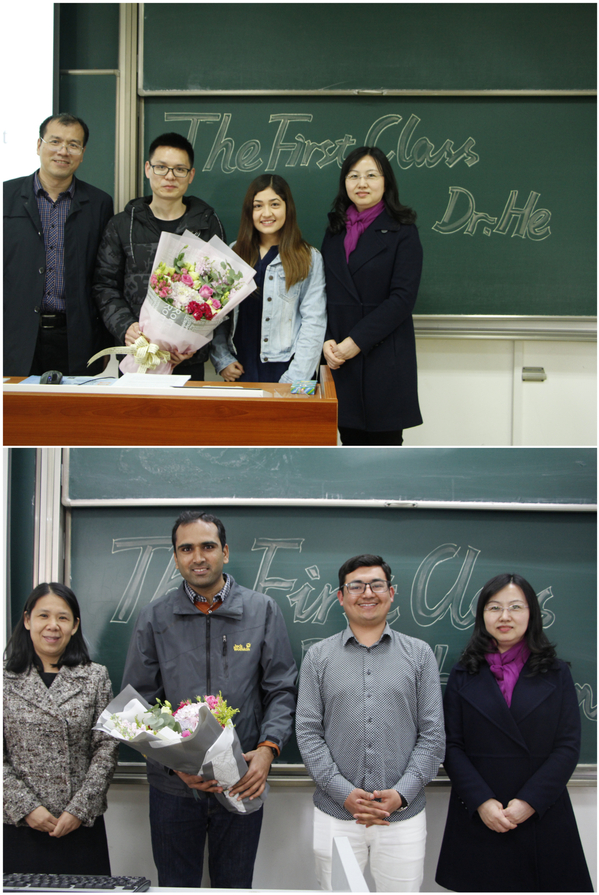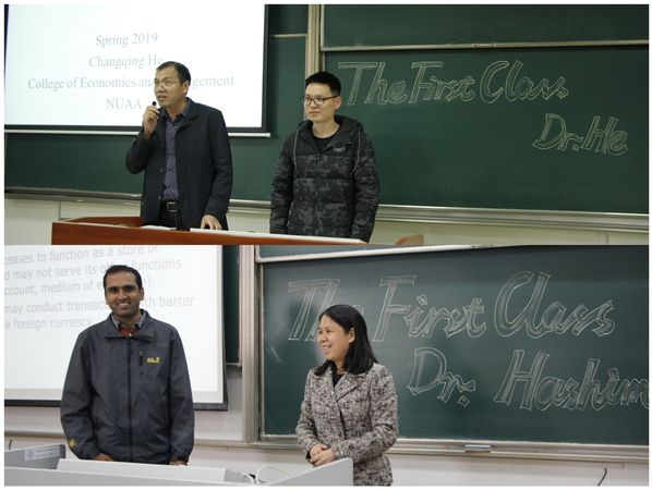 4月3日,对于红足1世7781490后何昌清老师和外籍教师HASHIM ZAMEER来说,是教师职业生涯中难忘的一天。这一天,经管学院党委书记焦宏图、副院长王英、邓晶分别将两位老师送上了英文课程《工商管理导论》、《宏观经济学》的讲台。