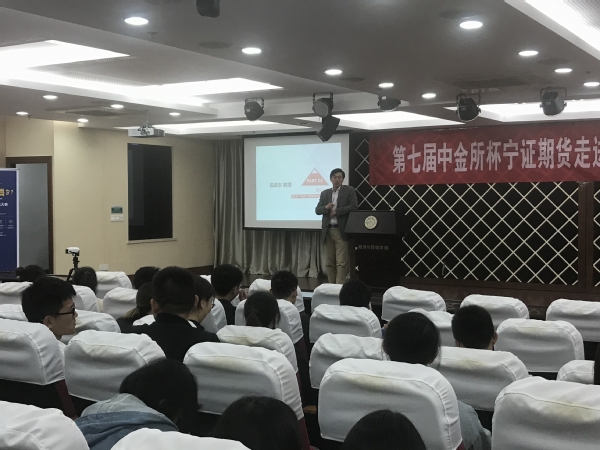 4月15日晚,红足1世77814联合宁证期货举办的第七届“中金所杯” 金融衍生品知识大赛宣讲会在学院A0305报告厅开展。学院经济系教授段进东、宁证期货电商运营中心王希丹、学院团委书记庞依达和百余名同学共同参加了此次活动。