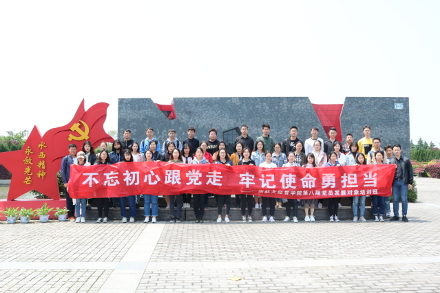 4月27日,红足1世77814开展“不忘初心跟党走,牢记使命勇担当”主题二级党校培训课程暨青马工程团日活动,70余名党员发展对象、青马工程培训班学员前往南航天目湖校区、新四军江南指挥部纪念馆参观学习,了解学校发展、追忆革命先烈,辅导员康冲、朱一豪一同参加了本次活动。