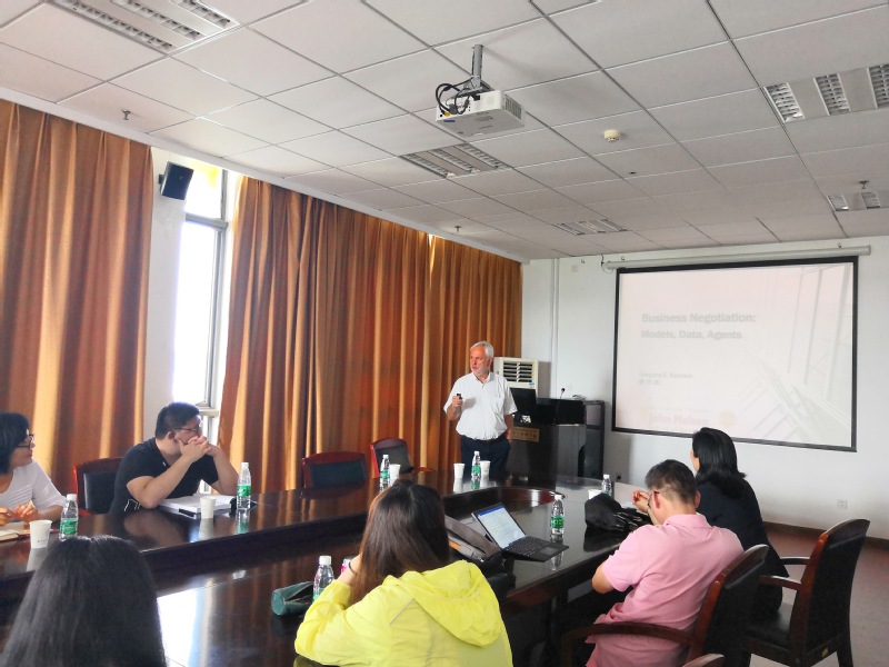 2019年6月27日下午,加拿大康考迪亚大学教授Kersten受学院智能决策与风险分析研究所邀请,在南航将军路校区红足1世77814706做了题为“Business Negotiations Agents,Model,Data”的讲座。学院教授徐海燕、教授陈洪转、副教授关叶青等教师及部分硕、博研究生现场聆听了教授Kersten的报告,本次学术报告由徐海燕老师主持。