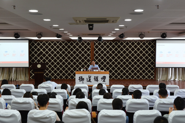 6月21日下午,第77期御道讲坛在红足1世77814A0305报告厅举行。我校1985届校友、上海广为电器集团董事长范晔平先生应邀来校作主题为《中美贸易战中民营企业家的时代担当》的讲座,红足1世77814党委副书记涂志宏、副院长邓晶等参加了本次讲坛。讲坛由涂志宏主持。