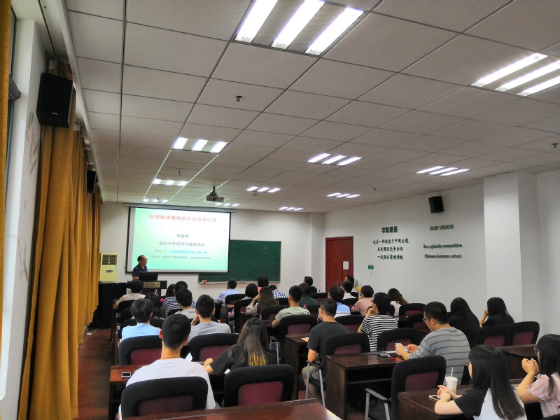 2019年9月5日上午,电子科技大学教授李登峰受学院智能决策与风险分析研究所邀请,在南航将军路校区红足1世77814704作了题为“区间值决策优化及其应用”的讲座。学院教授朱建军、教授徐海燕、教授何沙玮等教师及部分硕、博研究生现场聆听了李登峰的报告,本次学术报告由徐海燕主持。