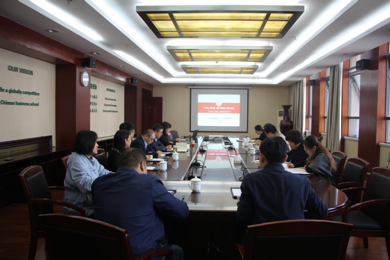 经管学院党委副书记涂志宏首先领学了习近平在全国高校思想政治工作会议、全国教育大会、学校思政课教师座谈会等会议上的重要讲话精神,并结合教育部《高校思想政治工作质量提升工程实施纲要》内容,围绕如何构建“三全育人”思政教育工作体系谈了自己的学习心得。她认为在新的发展机遇期,要坚持育人为本,通过挖掘各群体、各岗位的育人元素,着力打造“三全育人”共同体,打通工作存在的盲区、断点,真正把各项工作的目标落在育人效果上,更好地适应和满足学生成长诉求、时代发展要求、社会进步需求。
