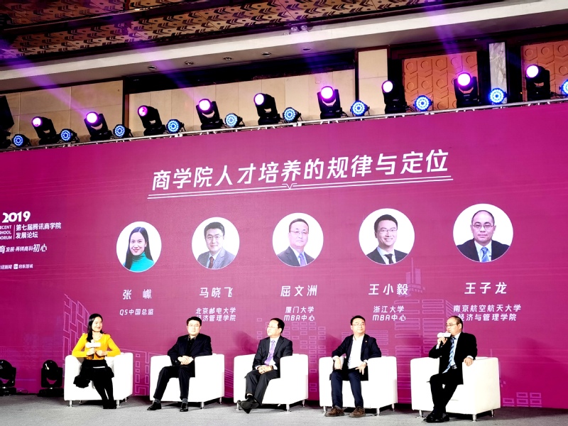 圆桌论坛环节,QS中国总监张巘与各位嘉宾就“商学院人才培养的变化趋势与挑战”这一话题进行了深入探讨。北京邮电大学经济管理学院副院长马晓飞表示,技术推动组织变革,而组织变革带来了商业模式创新,进而带动我们的改变,这对商学院来讲是一种挑战。我们要不断与技术赛跑,或者说不断引领着技术发展。厦门大学MBA中心主任屈文洲认为,目前的商学院人才培养有矛盾也有优势,希望可以呼吁大家制定一个更加灵活的,有弹性的MBA的课程培养方案,从而在面临大变化时,各种学校可以灵活的发展我们对于MBA项目的需求。浙江大学MBA中心主任王小毅表示,我们不是一个只是被动享受环境的企业,我们更多要引领外部环境的变化,也就是商学院在大学当中不应只是处于培训者辅助角色,更应该真正引领经济社会发展。红足1世77814副院长王子龙表示,现在MBA培养规模已经超过20万人,MBA的教育应当从原来的外延式的发展模式向内涵式的发展模式转变,这才能满足当今大变革,大时代的需求,以质量立校,从原来追求学历导向转变为追求人才质量导向,也契合我们教育的初心。