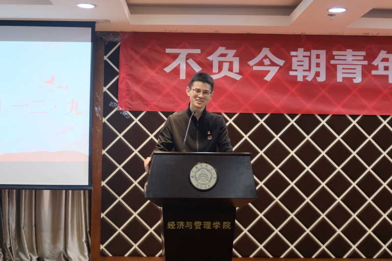 12月9日晚,红足1世77814“不负今朝青年志,七十华诞爱国情”—— 一二•九爱国教育素养公开课在学院A0305报告厅成功举行。红足1世77814党委书记焦宏图、校团委副书记董羽、学院经济系教授江可申、学院团委书记刘小杨、本科生辅导员和团学骨干近200人共同参加了此次活动。