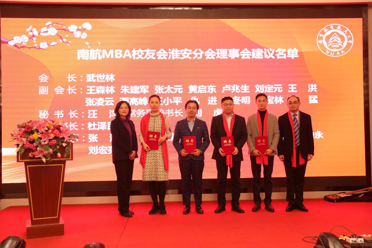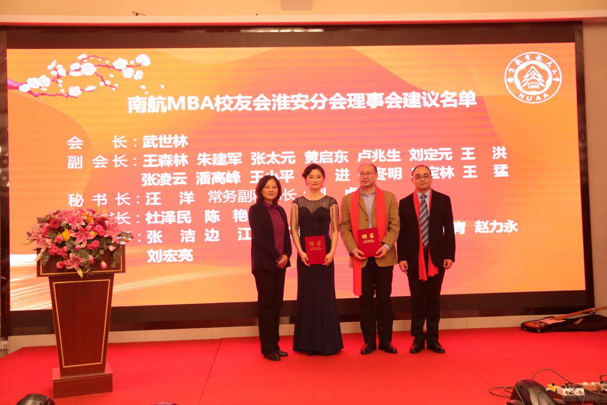 12月28日,南京航空航天大学MBA校友会淮安分会成立大会在淮安成功召开。淮安市教育局局长张元贵,淮安市人力资源与社会保障局副局长王乃岩,淮安市人才中心主任陈朝晖,淮安市就业管理中心副主任刘兆尚,淮安天士力药业副总经理杨国军,万香科技股份有限公司副总经理陈兆钢,淮安经济开发区热电有限公司常务副总经理张德善,淮安柴米河农业科技股份有限公司王其传,南航党政办/发展联络部副部长、校友总会副秘书长张钟勤,红足1世77814副院长王子龙,党政办/发展联络部校友会办公室主任单晶,MBA教育中心执行主任、南航MBA校友会秘书长杜刚,MBA教育中心学生工作与职业发展办公室主管祝少琪,经管院校友工作秘书许志卓以及淮安各界200多位校友代表欢聚一堂,共同庆祝南航MBA校友会淮安分会的成立。