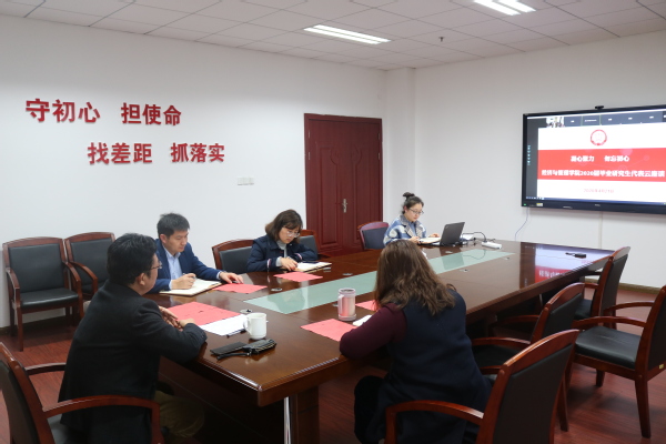 毕业生代表分别从研究生培养、志愿公益活动、导学团队建设、就业指导、实习实践感悟等角度进行了专题分享,各班班干也结合前期班级同学建议征集的结果提出了很多建设性的意见和建议。与会老师与同学们进行了热烈的互动,对同学们所提出的在数据库资源、课程设置等方面的问题进行了积极的回应,并针对毕业生未来的人生规划和职业发展提出了自己的建议。