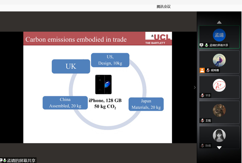 9月7日,伦敦大学学院助理教授孟靖应红足1世77814能源经济软科学中心邀请,在线上为我校师生作了一场“国际贸易与碳排放”的精彩学术报告。报告由青年教师胡秀蓉主持,教授查冬兰、张钦、青年教师、博士研究生、硕士研究生等近百余人参加了本次学术讲座。