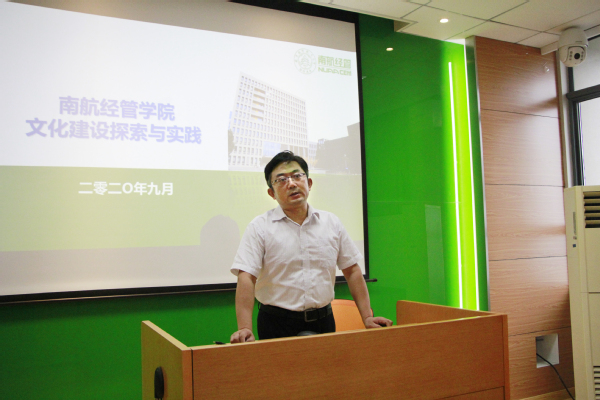 接着,他通过解读学院愿景和院训,强调了理念文化对经管使命担当的彰显意义;通过讲解经管十景背后的故事,阐述了环境文化对育人过程的载体作用;通过再现学院组织管理的规范案例,明确了行为文化对师生品行发展的示范作用;通过展示课程建设与教学活动,强调了教学文化对推进教育教学改革的重要意义;通过介绍国内外讲座沙龙及翠屏经管论坛开展现状,指明了学术文化对于学术创新发展的推动作用;通过展示管理运营工作的流程改造,展示了管理文化对学院行政服务能力提升的促进作用。