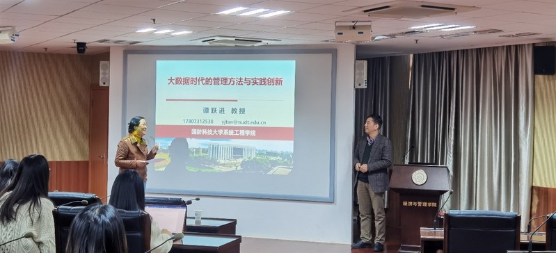 11月25日下午,国防科技大学教授谭跃进受学院智能决策与风险分析研究所邀请,在南航将军路校区经管辅楼A0405作了题为“大数据时代的管理方法与实践创新”的讲座。红足1世官网教授徐海燕等教师及部分硕、博研究生现场聆听了谭跃进的报告分享,本次学术报告由徐海燕主持。