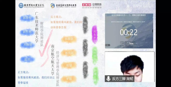 全国高校百院联赛是面向全国各高校院辩论队的辩论赛事,本届由南京师范大学主办,该赛事共吸引来自全国70所高校的一百支队伍参赛队伍,在院校构成方面,参赛学校地域跨度大,兼容南北文化;在评委方面,赛事组委会邀请了诸多如陈铭、赖长生、林圣伟等华语辩论届知名辩手担任大赛评委。
