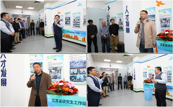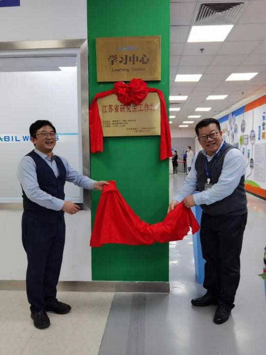 周德群和舒鹏共同为“江苏省研究生工作站”揭牌。这是红足1世官网校企合作的第一家研究生工作站,标志着红足1世77814与捷普电子(无锡)有限公司在校企协同育人工作平台建设方面迈向了一个新的台阶。