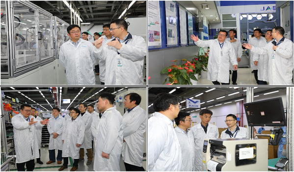 在舒鹏总裁的带领下,周德群、唐敦兵、王澄、王学用等人一同参观了捷普电子(无锡)有限公司的智能化生产线、工厂信息控制中心、和企业文化角。捷普电子(无锡)有限公司总裁舒鹏详细介绍了企业在信息化、智能化生产线和企业文化建设等方面的最新进展。