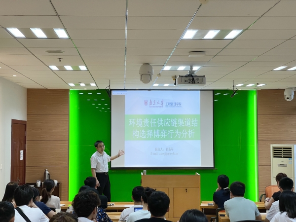 肖条军的报告详细介绍了环境责任供应链渠道结构选择博弈行为,极大地调动了在座师生的兴趣,在座师生与肖条军积极讨论环境责任行为对渠道选择的影响等相关问题,收获颇丰。