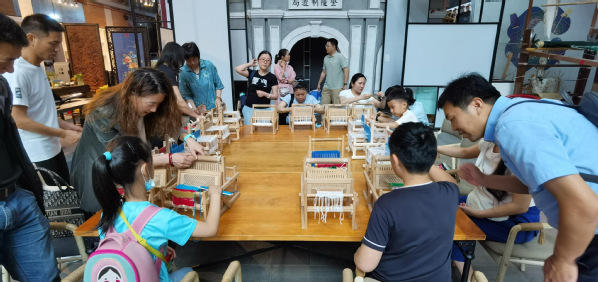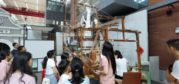 1865文化创意产业园已成了文化创意产业孵化、集散和展示的基地。这里的文创企业也很多,同学们实地感受了云锦的制作过程,南京云锦木机妆花手工织造技艺经国务院批准列入第一批国家级非物质文化遗产名录。讲解老师介绍两个工人一天仅能制作5cm左右的云锦,所以云锦有"寸锦寸金"之称。同学们对织造师傅几十年的坚持表示敬佩。