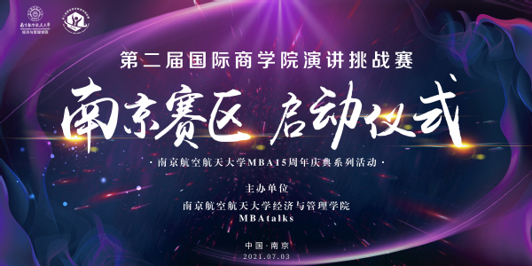 “魅力绽放,连接彼此,与智者为伍”,2021MBAtalks第二届“国际商学院演讲挑战赛”(南京赛区)启动仪式,7月3日在南京航空航天大学隆重开启!国演赛(南京赛区)由南京航空航天大学经济管理学院和MBAtalks主办,赛区覆盖南京及周边地区商学院/管理学院。