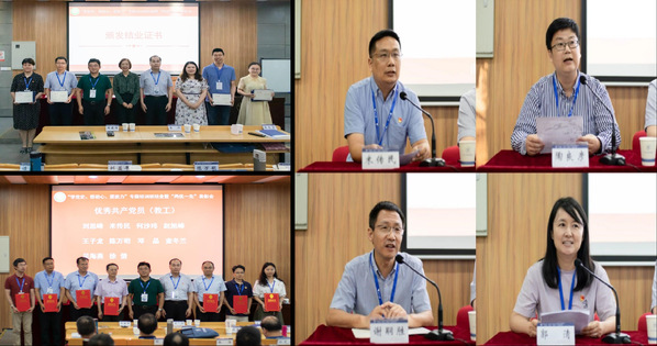 周德群院长与苏州书记为2021年度先进基层党组织、优秀共产党员和优秀党务工作者颁发获奖证书。米传民、谢嗣胜、陶良彦、郭清四位老师作为学员暨受表彰单位与个人代表,结合本次参加培训经历感悟,从坚守初心、牢记宗旨、践行使命等方面依次发言。最后,院党委书记苏州对本次培训进行了总结。