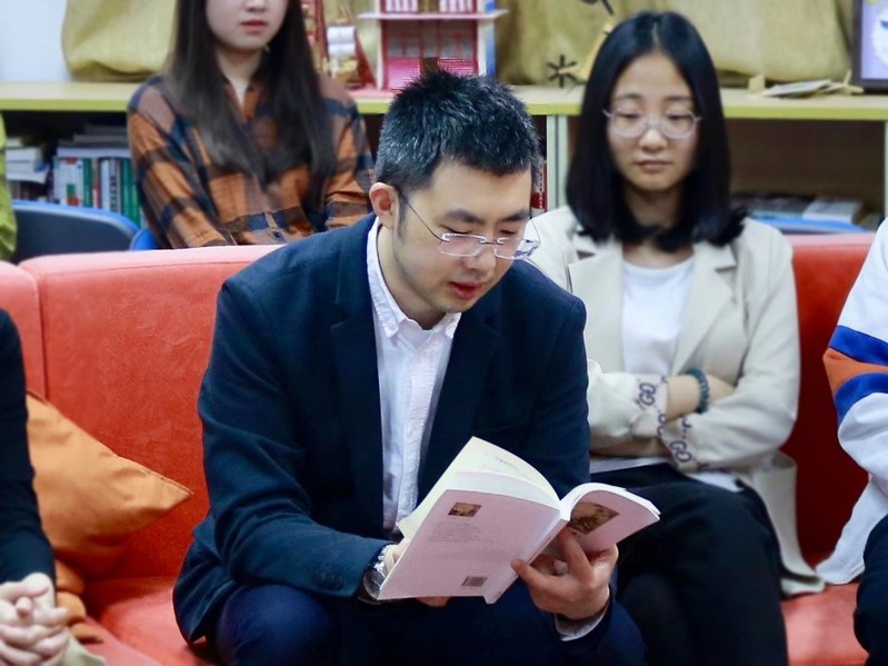 活动伊始,何沙玮老师介绍了翻译名家许渊冲老先生,通过讲述许渊冲“择一事终一生,不为繁华易匠心”的翻译生涯,引入推荐书籍——英译版《汉魏六朝诗》。以朝代顺序为时间线,中英结合,他与同学们分享了四首经典诗歌,并结合诗歌历史背景讲述文化发展,何老师提到六朝诗词在中国诗歌发展史上发挥了承上启下的重要作用。