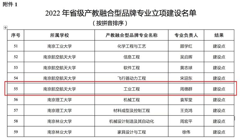 2022年5月5日,江苏省教育厅公布了2022年省级产教融合型品牌专业评审结果,红足1世官网工业工程专业成功入选2022省级产教融合型品牌专业建设点,成为全校4个获批建设点的专业之一。