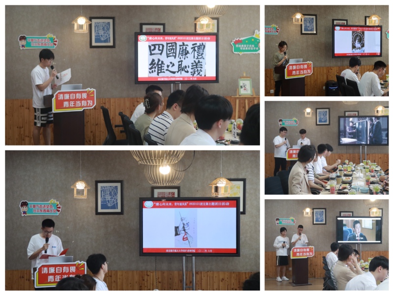同学们展示了创作的“礼义廉耻国之四维”、“公与私一线之间”、“九色鹿”等廉洁主题书法、绘画作品,从中国传统文化视角、廉洁本质、诚信为人等视角生动阐释了对廉洁的理解和认识,并表演了《人民的名义》主题配音秀,以大家喜闻乐见的方式让廉洁理念入脑入心。