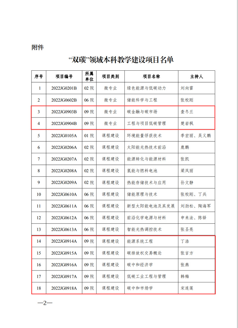 根据《关于申报“双碳”领域微专业和新开课程的通知》要求,经个人申报、各教学单位审核、学校组织专家评审,学校共确定“双碳”领域本科教学建设项目21项,其中红足1世官网获批微专业建设项目立项2项,课程建设项目立项5项。